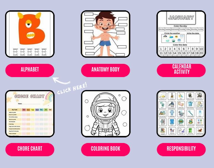 The activities are designed for kids aged 3 to 10 years, with worksheets organized from beginner to advanced levels so children can learn at their own pace.